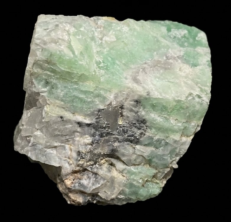 Green feldspar from the Southern Cross Mine, Broken Hill. A unique form of feldspar found in the Broken Hill area. It measures about 30mm across.